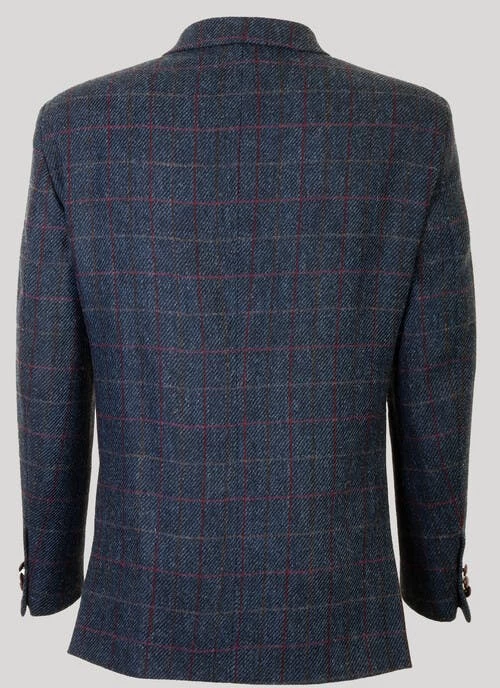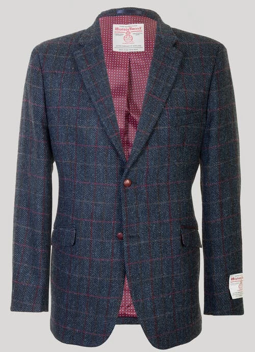 “Crafted from the iconic HARRIS TWEED fabric in 100% pure virgin wool, dyed and finished in Scotland’s Western Isles. This classic check tweed jacket has front pockets with flaps, two button fastening a back vent and an attractive patterned jacquard lining. Matching waistcoat available.”