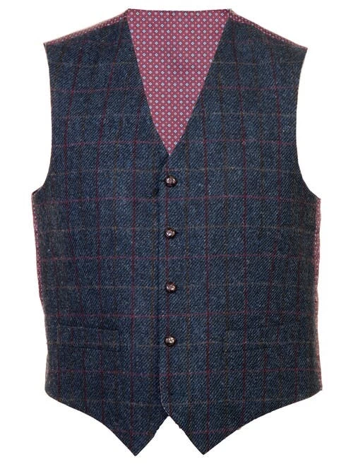 HARRIS TWEED Waistcoat with an attractive patterned lining, this 100% pure virgin wool garment has been hand woven by Hebridean craftsmen. Featuring button front fastening, two front pockets and reverse lining with an adjustable strap.