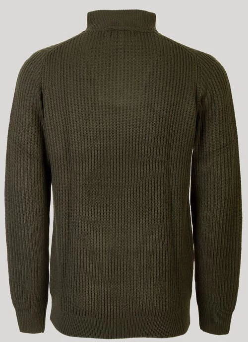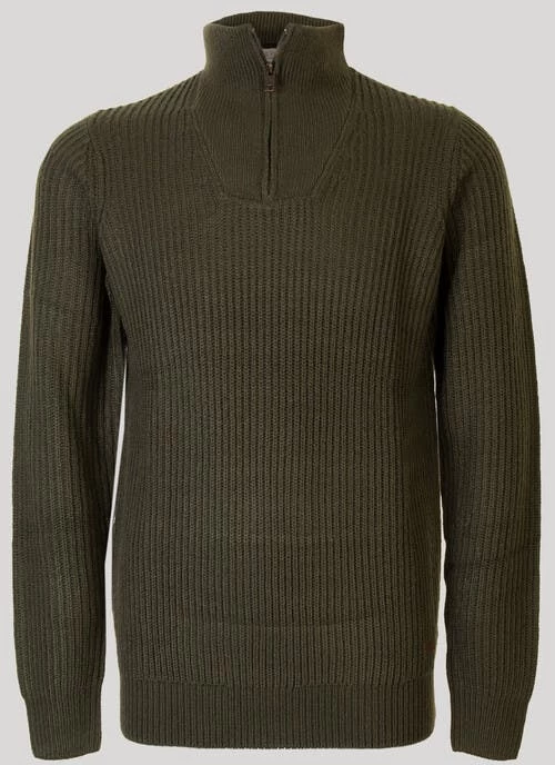 “Our famous fisherman’s rib chunky knit half zip jumper by PG Field. It?s available in a choice of easy to match colours that look great with cords, chinos or jeans for a weekend look that never dates.”
