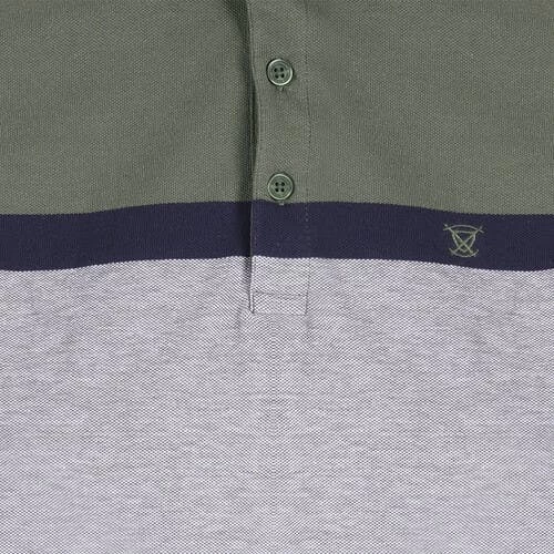 This panel stripe polo shirt by James Pringle has a knitted collar and three button fastening.
