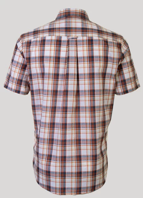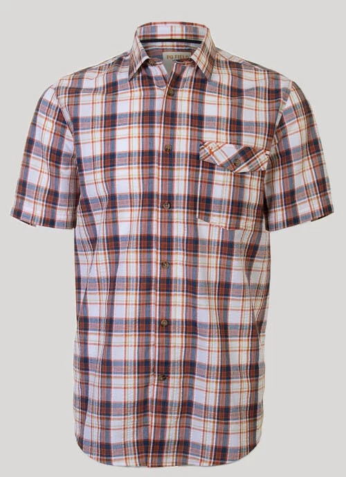 This seersucker check shirt by PG Field is in an easy-to-iron fabric. Wear buttoned to neck or open with a t shirt for a relaxed weekend look.