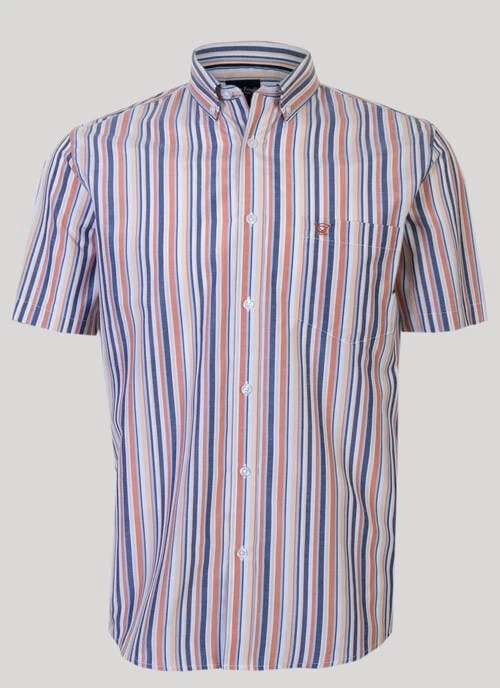 This stripe shirt by James Pringle is in an easy-to-iron fabric. Wear buttoned to neck or open with a t shirt for a relaxed weekend look.
